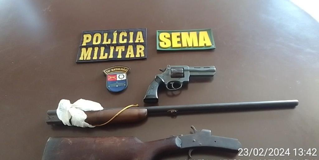 Agentes da Secretaria de Estado de Meio Ambiente (Sema-MT) e da Polícia Militar apreenderam duas armas de fogo, nesta sexta-feira (23.02), durante abordagem de rotina na barreira fixa do posto de fiscalização da Sema-MT na rodovia MT-060, mais conhecida como Transpantaneira.