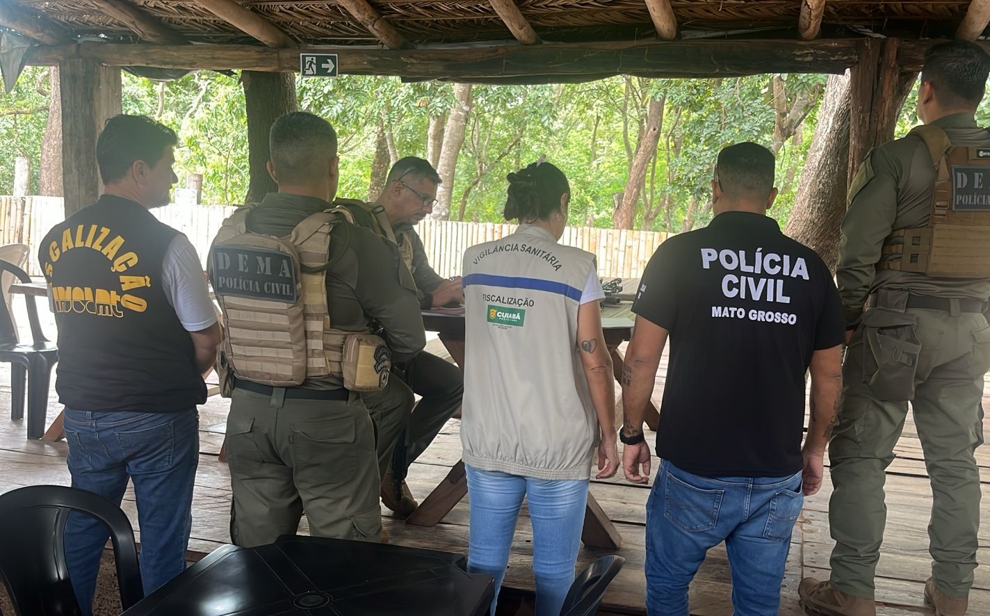 A Polícia Civil, Vigilância Sanitária de Cuiabá e o Instituto de Defesa Agropecuária de Mato Grosso realizaram, na manhã desta sexta-feira (12.04), fiscalização em um bar, restaurante e peixaria localizado no bairro Morada do Ouro, em Cuiabá, e interditaram o local em função do funcionamento de um frigorífico clandestino no estabelecimento.