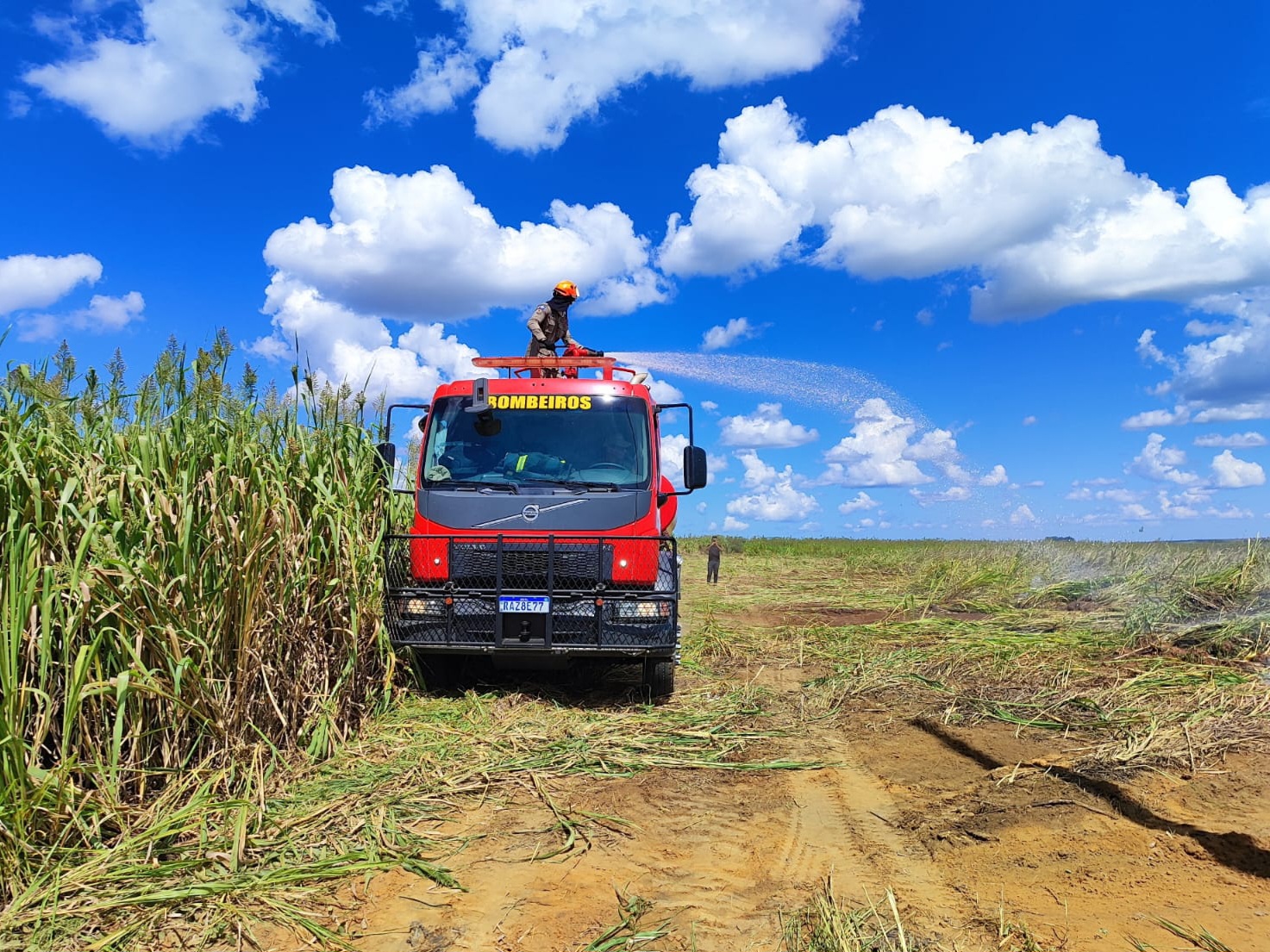 Após extinguir as chamas, os bombeiros realizaram o rescaldo, que consiste na eliminação de todos os focos remanescentes de incêndio.