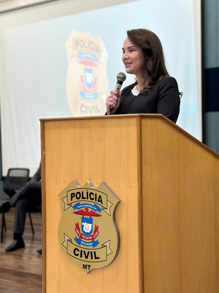 “E nesse percurso, constituímos família, tivemos filhos e sonhos e enfrentamos desafios, sofremos decepções, perdemos pessoas importantes e continuamos aqui, prontos para os desafios que são enormes, como a criminalidade, a tecnologia, a vida moderna, crises e estresse. Mas temos que enfrentá-los e buscar de forma, incansável, soluções para esses problemas e sem esquecermos de nossa responsabilidade e força como Polícia Judiciária Civil”, frisou emocionada a delegada-geral.