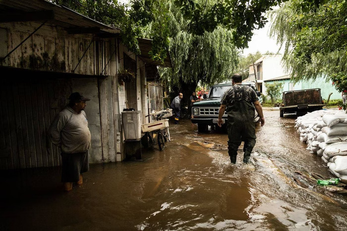 A agência de notícias aponta que os bairros de Pelotas mais próximos à Lagoa dos Patos estão alagados. E a população usa o que pode, como sacos de areia, para não deixar a água entrar em casa.