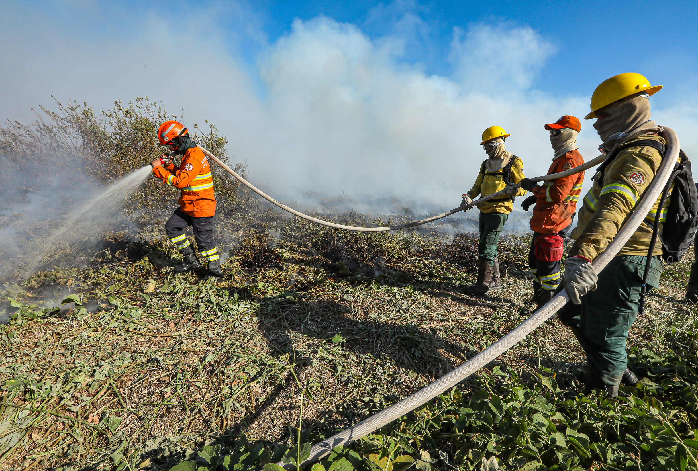 O Corpo de Bombeiros Militar de Mato Grosso segue no combate a quatro incêndios florestais no Estado neste domingo (21.07).
