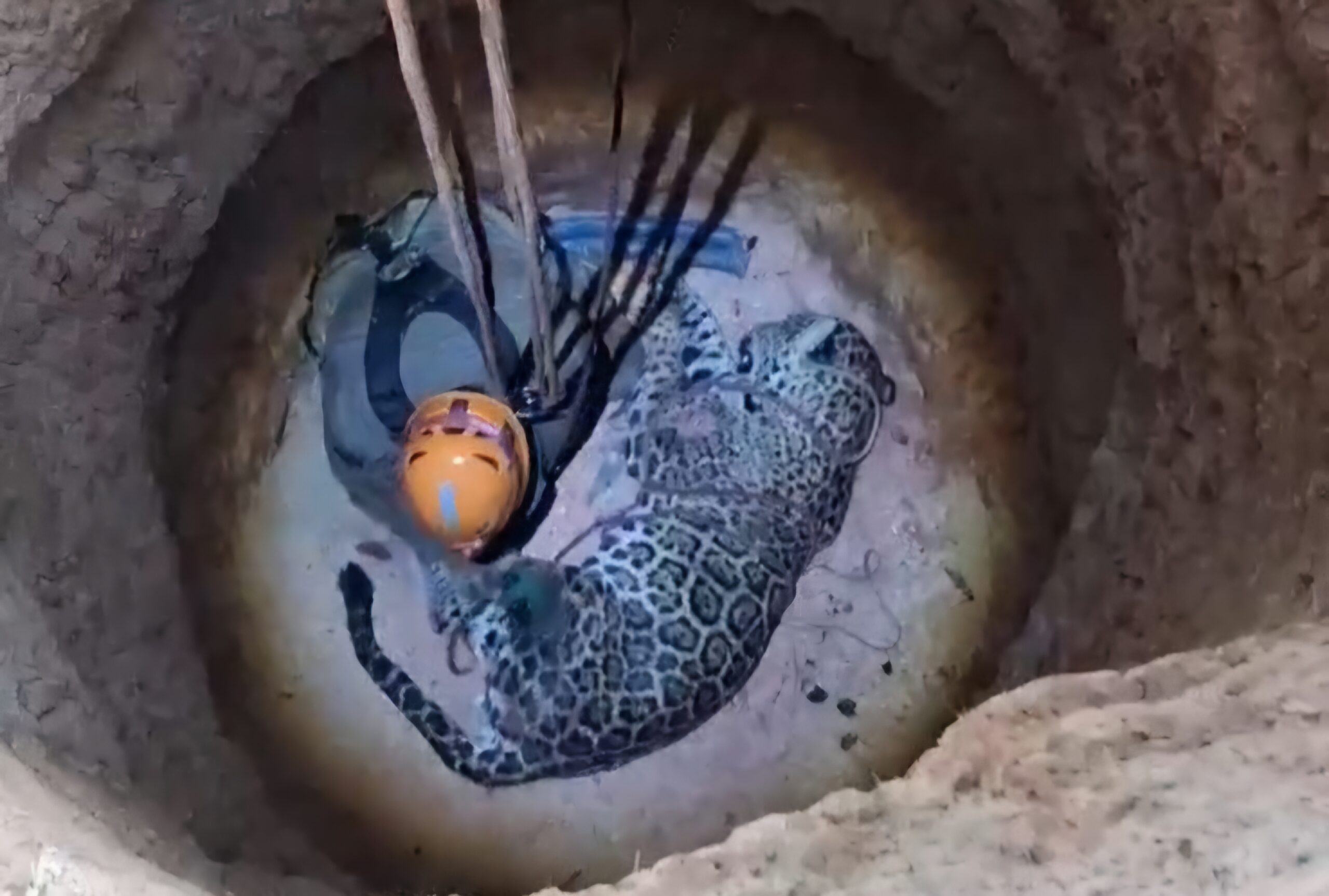 Eder explicou que a equipe do Corpo de Bombeiros desceu até o local onde estava o animal e o içou para a superfície. A onça já havia sido sedada por agentes da ONG Ampara Silvestre.