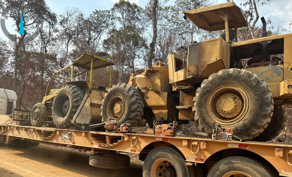 Os tratores apreendidos foram 1 trator esteira e 1 trator pneu. Também foram apreendidas 4 motosserras.