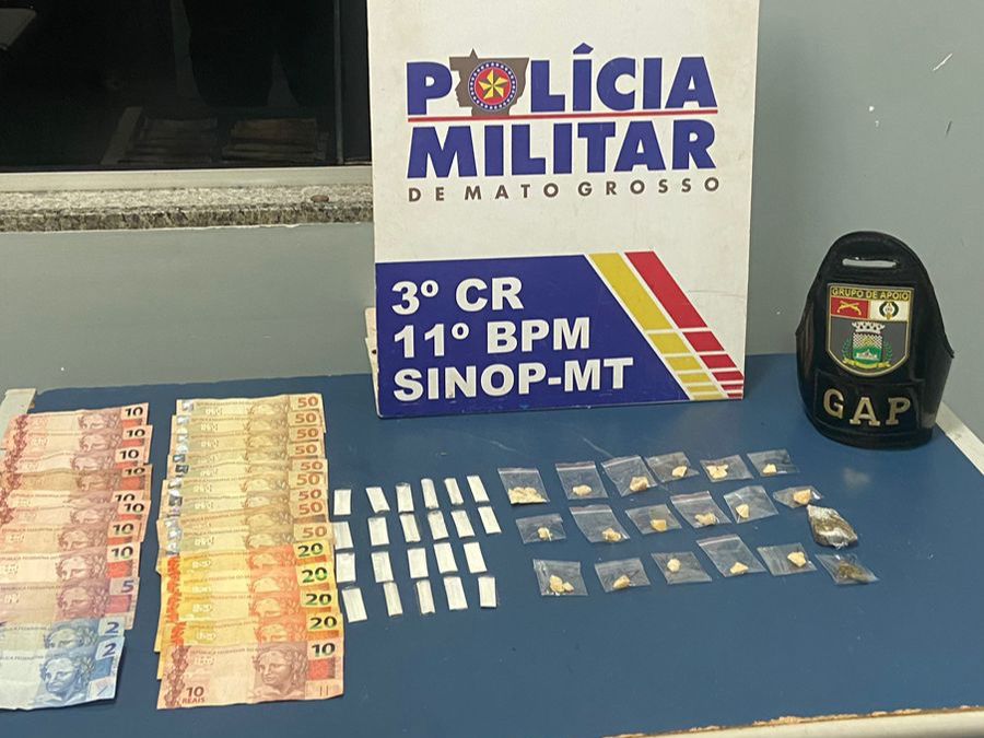 Policiais militares do 11º Batalhão prenderam em flagrante um homem de 20 anos por tráfico de drogas, na madrugada deste sábado (20), em Sinop. Com o suspeito, foram apreendidas 41 porções de entorpecentes entre maconha e cocaína.