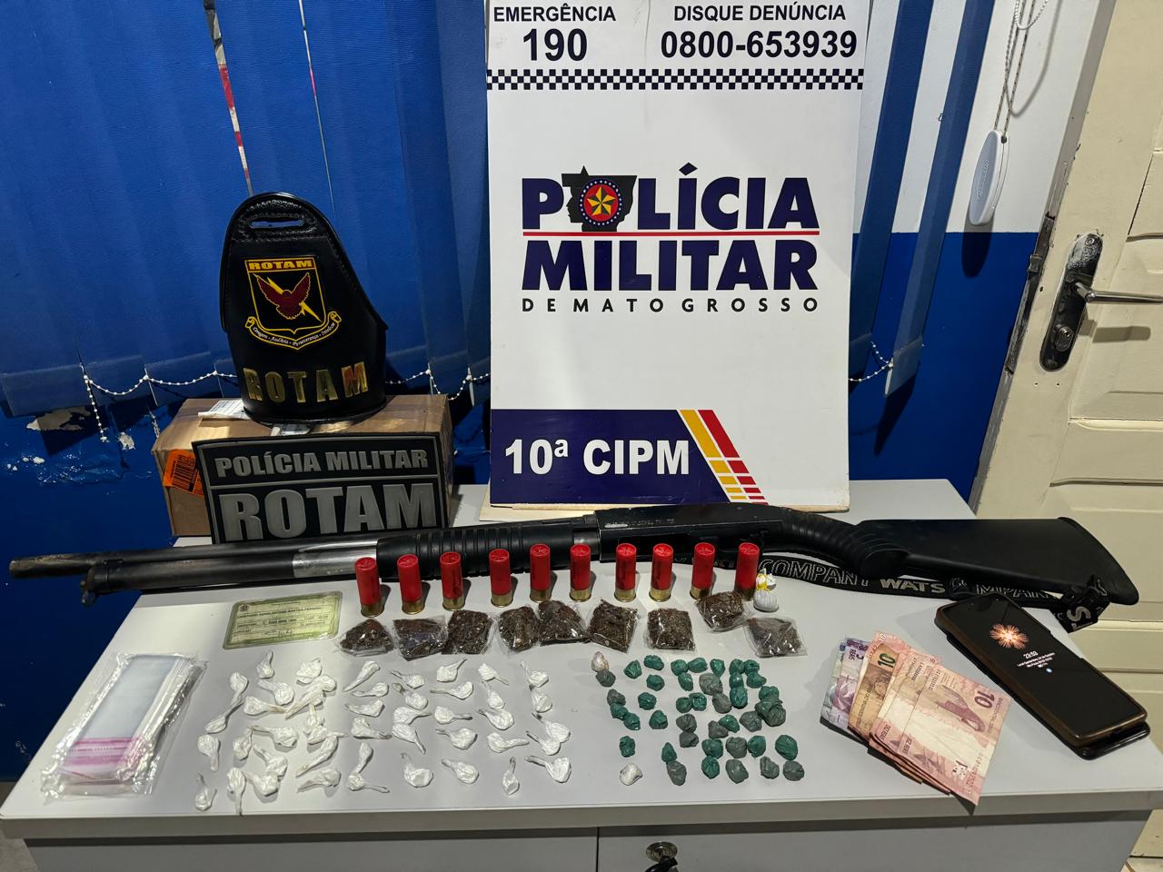 Policiais militares do Batalhão de Ronda Ostensiva Tática Móvel (Rotam) e da 10ª Companhia Independente de Aripuanã prenderam, na noite desta quinta-feira (24.10), um homem por tráfico e porte ilegal de arma de fogo no município (a 960 km de Cuiabá).