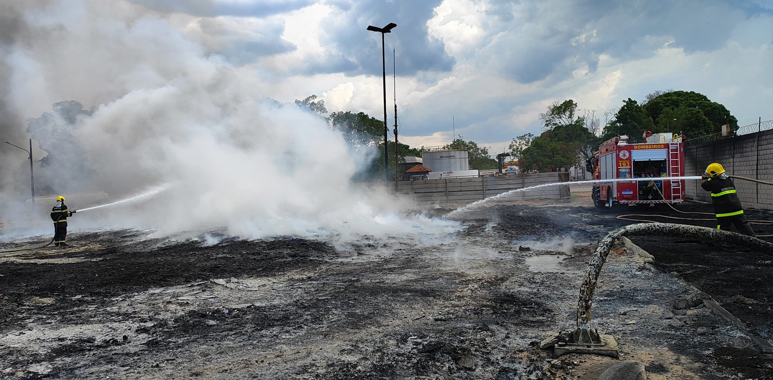 “A empresa cedeu caminhões de terra e um trator para que pudéssemos revirar o material queimado e cobrir com terra as áreas onde ainda havia brasas. Também utilizamos mais de 200 litros de LGE para realizar a mistura na viatura e aplicar a espuma nas áreas afetadas para concluir o abafamento. Esses recursos foram essenciais para controlar os focos remanescentes e garantir a segurança da área”, explicou o tenente-coronel.