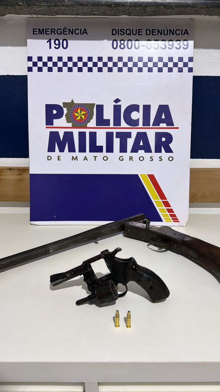 Policiais militares do município de Santo Afonso prenderam em flagrante um homem de 48 anos pelos crimes de porte ilegal de arma, lesão corporal e ameaça, na noite deste domingo (27.10). Com o suspeito, a PM apreendeu duas armas de fogo, sendo uma espingarda e um revólver.
