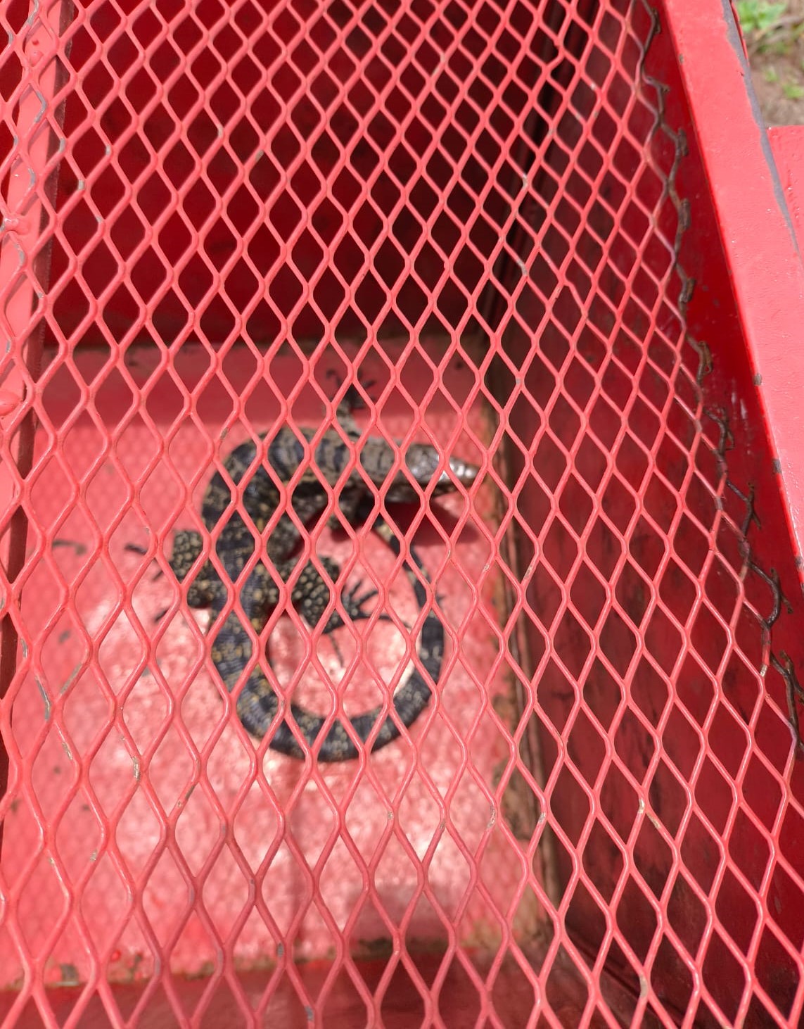 Após a captura, o Teiú foi transportado e solto em seu habitat natural.