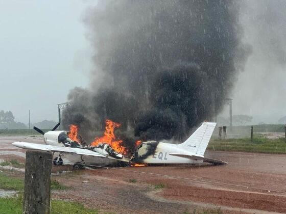 Conforme registrado pela Polícia Militar, o acidente aconteceu por volta das 9h, quando o gerente de uma fazenda acionou as equipes relatando que um avião havia feito um pouso forçado em uma das pistas próximas à sede da fazenda e acabou pegando fogo.
