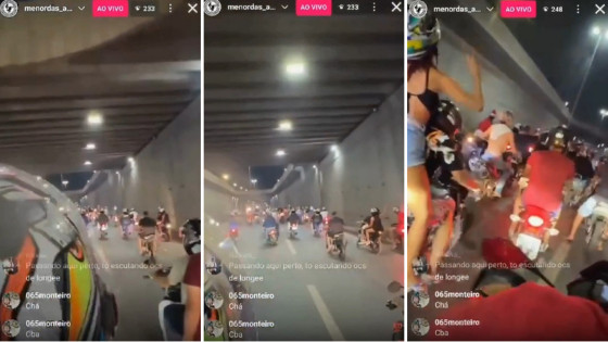 Nas imagens, os motociclistas comemoram citando que a cidade foi “tomada” por eles. Contudo, minutos depois, ao passarem pelo viaduto da Miguel Sutil, alguns começam a gritar que “fudeu” porque havia polícia no local.