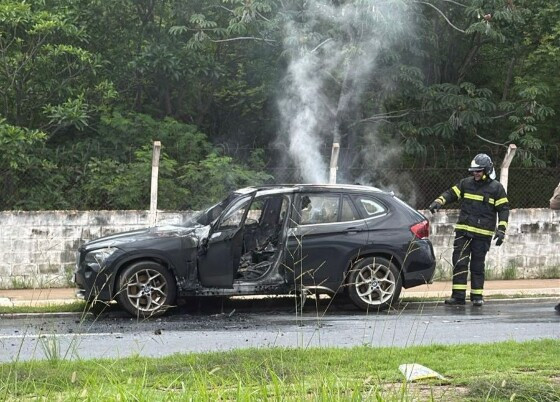 BMW pega fogo na Avenida 31 de Março em Várzea Grande