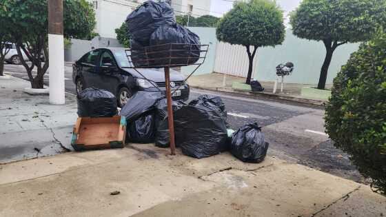 Moradores do bairro Bosque da Saúde, em Cuiabá, estão há uma semana sem o serviço de coleta de lixo. Com isso, montanhas de lixo se acumulam nas calçadas e o mal cheiro já começa a incomodar.