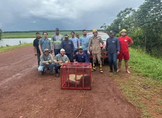 O animal foi capturado por uma equipe do Corpo de Bombeiros. Os militares foram acionados por funcionários da propriedade.