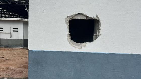 Neste momento, os policiais penais realizam uma vistoria na unidade e o rombo na parede será fechado.