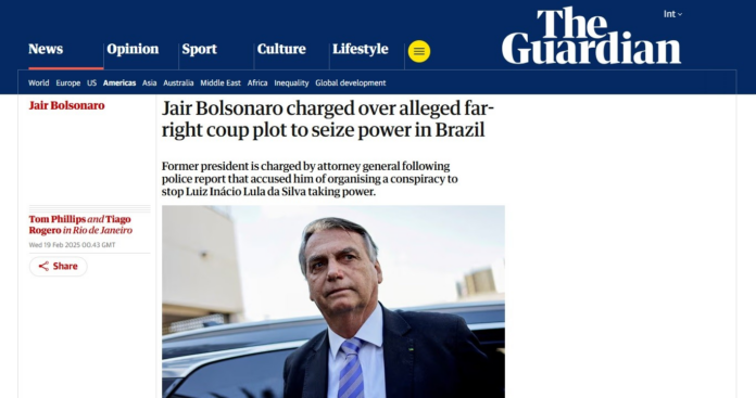 Segundo o britânico “The Guadian”, Bolsonaro foi acusado de ajudar a arquitetar uma conspiração de extrema direita para permanecer no poder por meio de um golpe militar.