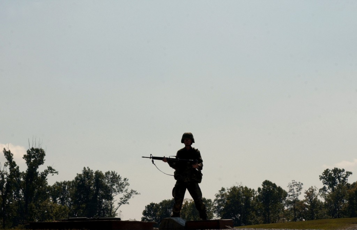 Soldado armado protege a base em Fort Knox, em setembro de 2004