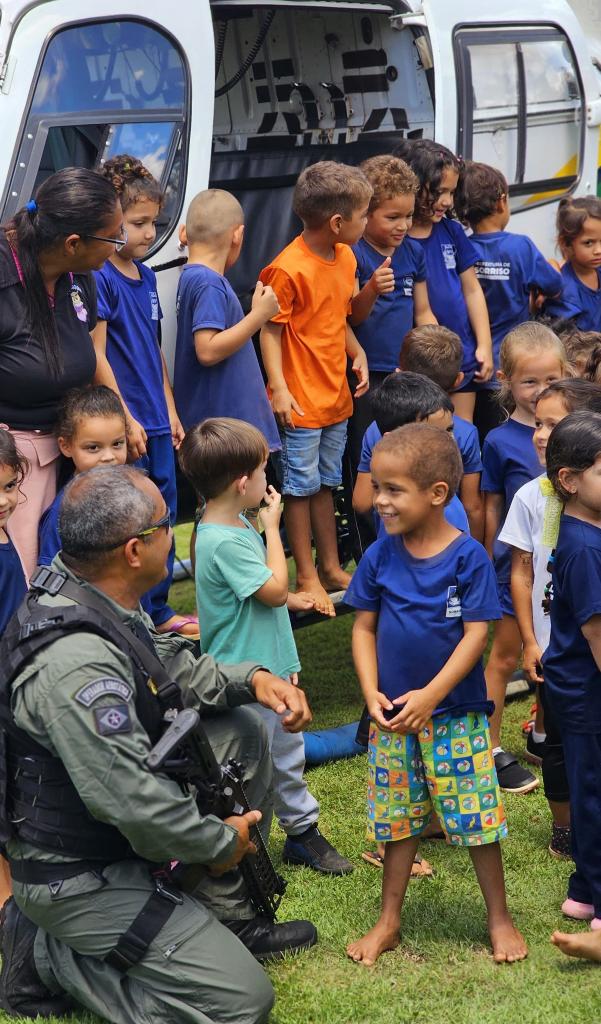 A base do Ciopaer em Sorriso também desenvolve um trabalho de aproximação com a comunidade, especialmente com crianças e jovens. A unidade recebe alunos da rede pública e particular de ensino, além de participantes de projetos sociais da região, promovendo uma interação educativa e aproximando a sociedade das forças de segurança.