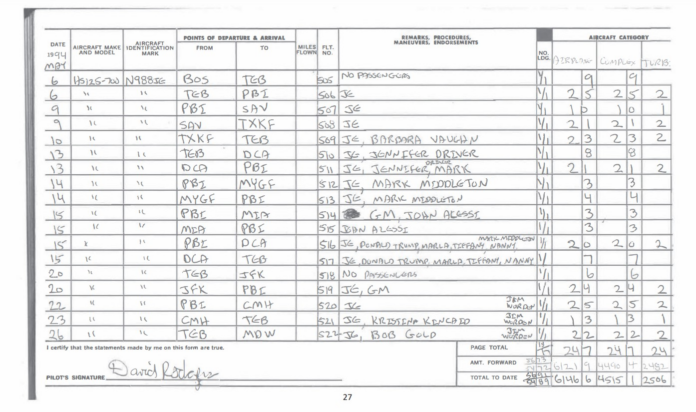 Em duas delas, de maio de 1994, o nome de Trump aparece ao lado do de outras pessoas, como o de Marla Maples, ex-esposa do presidente, e o da filha Tiffany. O registro também mostra as iniciais “JE”, que seriam de “Jeffrey Epstein”, segundo a imprensa americana.