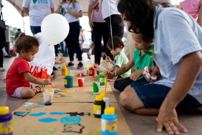 A programação da tarde de sábado envolveu público de diferentes idades que participaram das oficinas de terrário e aproveitamento de biolodo, pintura livre, mosaico de água, arborização urbana, distribuição de muda, jogo trilha legal do tuiuiú e apresentações culturais. A Águas Cuiabá apresentou equipamentos para análise de água e uma visita virtual à ETA, permitindo que os participantes conheçam de forma interativa o processo de tratamento de água.