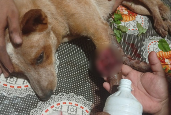 pelo tutor do animal, Alex Lima Melo, o cachorro, que atende pelo nome de “bob”, estava do lado de fora da casa quando o agressor, que estava visivelmente bêbado, utilizou a ferramenta para atacá-lo. Devido à gravidade da lesão, a pata do cachorro quase foi decepada.
