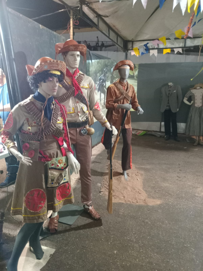 Djalma também faz menção às singularidades do São João nordestino: “Com o tempo, esse vestuário se tornou emblemático da cultura caipira, de uma maneira geral e, mais especificamente, do Nordeste. Figurinos de festas juninas do sertão vão estar expostos, já que essas comemorações acontecem em diversos locais do Brasil e mesmo do mundo, que também imprimem as particularidades de cada local. Mas, no caso da nossa mostra, o enfoque são as características que ela assume quando acontece lá, com os bens simbólicos dessa cultura”.