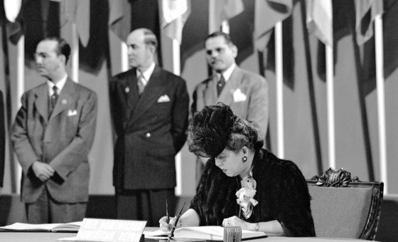 Ao lado de Bertha Lutz que lutou para que a expressão, “direitos iguais de homens e mulheres” fosse parte do texto, estiveram mais três diplomatas: a americana Virginia Gildersleeve, a chinesa Wu Yi-fang e a dominicana Minerva Bernardino.