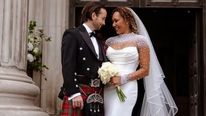 Spice Mel B, de 50 anos, compartilhou com os seguidores do Instagram neste sábado (05), um clique romântico do seu casamento o cabeleireiro Rory McPhee, de 37 anos.