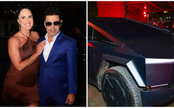 Zezé Di Camargo, de 63 anos, virou destaque ao chegar à tradicional Festa do Peão de Barretos acompanhado da mulher, Graciele Lacerda, na noite desta quinta-feira (28). O cantor foi ao evento dirigindo uma Tesla Cybertruck, avaliada em aproximadamente R$ 1,6 milhão no Brasil.