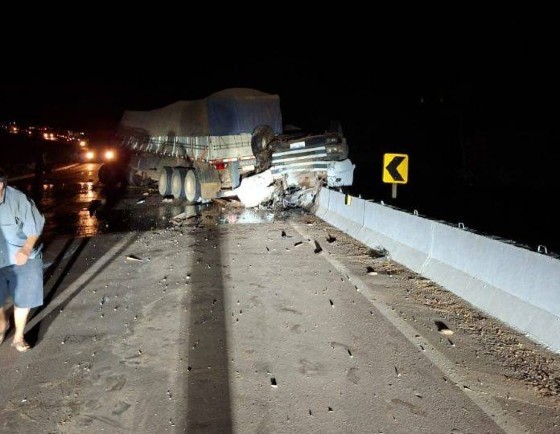 Após o tombamento, outro caminhão, também de cor branca e com seis eixos, carregado de soja, vinha no sentido contrário e bateu contra o caminhão tombado. O veículo estava sendo conduzido por um motorista de 54 anos, que conseguiu pular da cabine e escapar com vida.