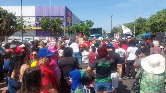 Membros de movimentos sociais e partidos de esquerda se reuniram na manhã deste domingo (21), na Praça Cultural do CPA 2, em Cuiabá, em protesto contra a Proposta de Emenda à Constituição (PEC) 3/21, conhecida como “PEC da Blindagem”, e contra a anistia aos presos pelos atos golpistas de 8 de janeiro.