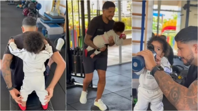 Yuri Lima, 31 anos, compartilhou um novo vídeo com a filha, Nala, que acaba de completar o seu primeiro ano de vida, fruto de seu relacionamento com a cantora, IZA, 35, de quem se separou recentemente, após quase três anos juntos. do seu treino diário e, dessa vez, levou a filha para como companhia.