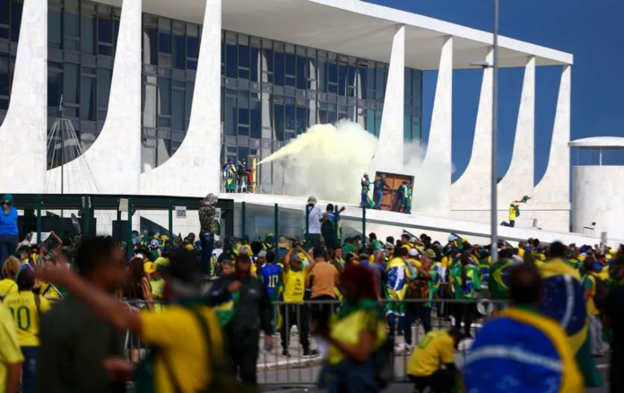 Grupo em atos golpistas em Brasília (DF) em 8 de janeiro de 2023
