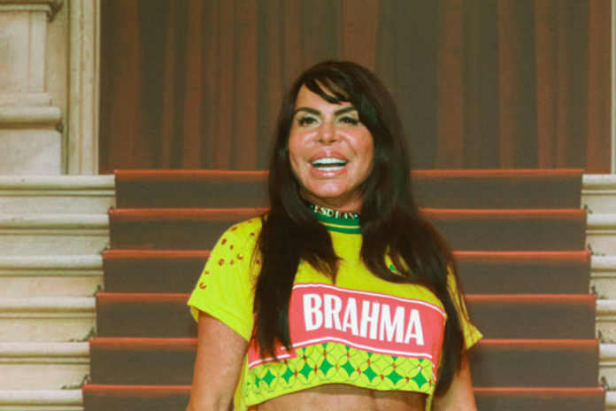 Gretchen, 66, foi um dos destaques do camarote Bar Brahma no segundo dia de desfiles de São Paulo, no Sambódromo do Anhembi.