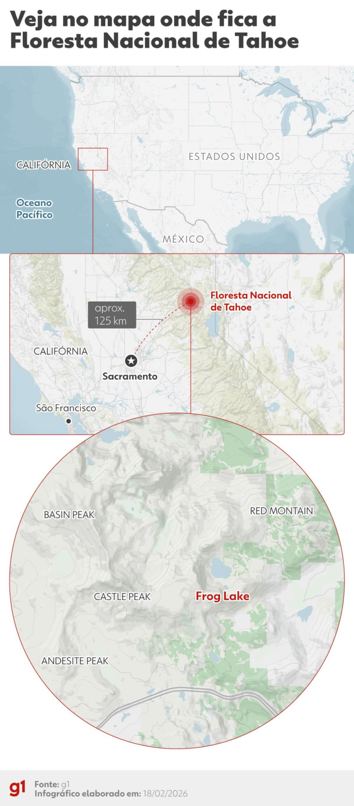 VALE: infográfico mostra local onde esquiadores desapareceram após avalanche na Califórnia, nos EUA