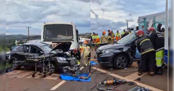 Um acidente envolvendo dois carros de passeio e um ônibus de trabalhadores deixou um homem ferido na BR-376, entre as cidades de Marialva e Mandaguari, pouco antes do posto Carro de Boi, nesta terça-feira (17). A vítima, de 51 anos, que conduzia um veículo Honda HR-V, ficou presa às ferragens e precisou ser retirada pelas equipes de resgate. O homem apresentava ferimentos na face e suspeita de traumatismo craniano. Ainda não há informações para onde ele foi encaminhado.