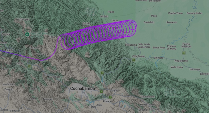 Rota em círculos descrita pelo Cessna Citation 550 matrícula CP-3243, que caiu na Bolívia em 13 de abril de 2026