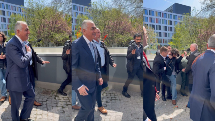Príncipe herdeiro do Irã tem tinta jogada em suas costas em evento em Berlim
