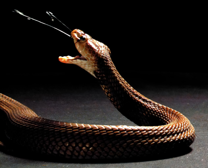 A cobra cuspideira núbia ou Naja nubiae, espécie de cobra nativa da África.